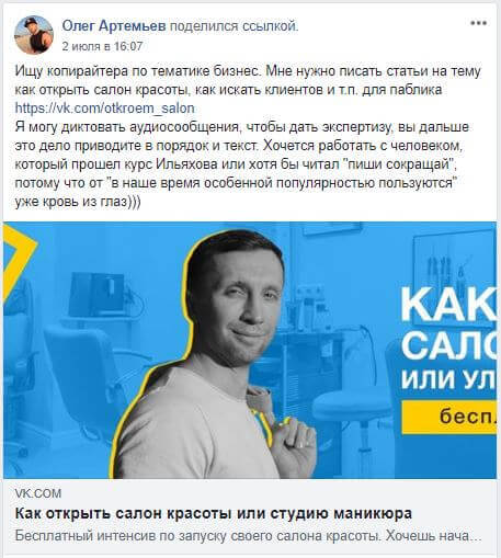 2. Группы в соцсетях, где ищут авторов