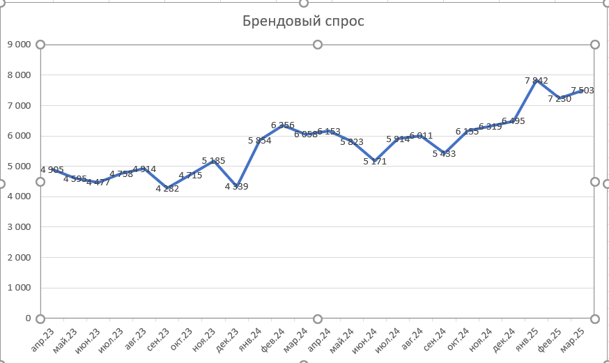 Также наблюдаем рост брендового спроса за счет работы контекстной рекламы и SEO-продвижения. Прирост брендового спроса составил 53%