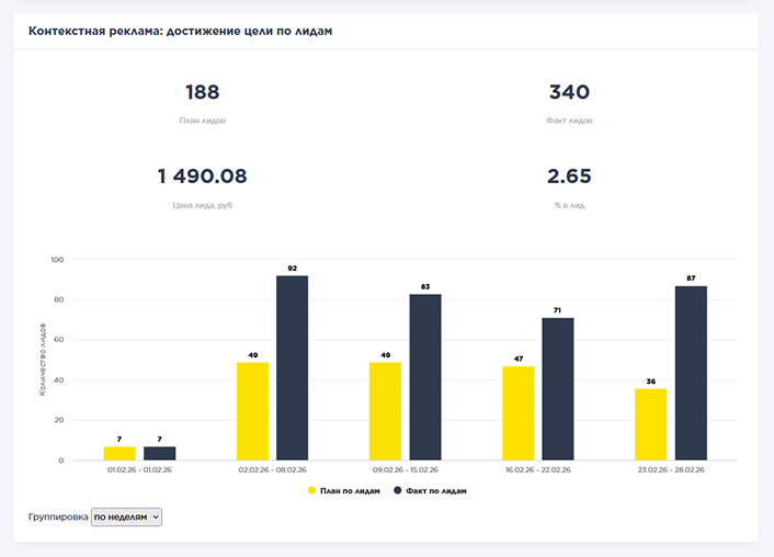 Открываете личный кабинет и видите: SEO принёс 80 заявок, контекст — 65, таргет — 30. Стоимость привлечения по каждому каналу — на одном экране.
