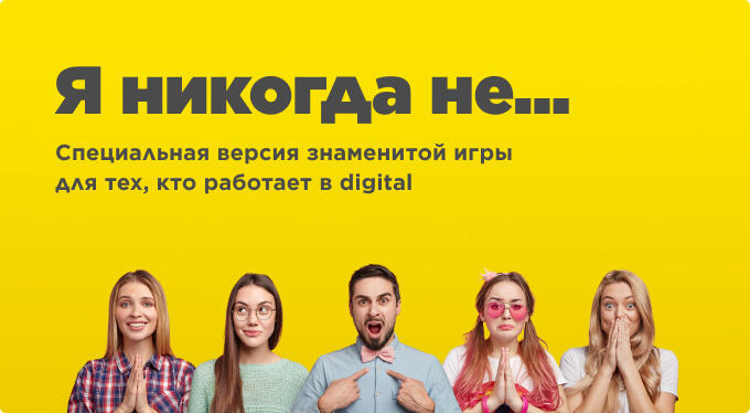 Что это за игра? «Я никогда не...» экстремально фановый челлендж, который отлично зайдет на любой вечеринке — будь это корпоратив или пятничные посиделки. Ты узнаешь много нового о тех, с кем трудишься в одном опенспейсе